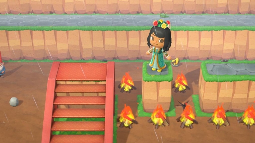 We have the Council of Elrond, with the One Ring to Rule Them All right in the middle. I edited some custom paths to give them Elvish designs, and I can’t decide whether they’re tacky or fabulous. There are plenty of rivers and waterfalls in Rivendell, so I had fun with the terraforming. And that money-grubbing leech Tom Nook had fun with my wallet.
